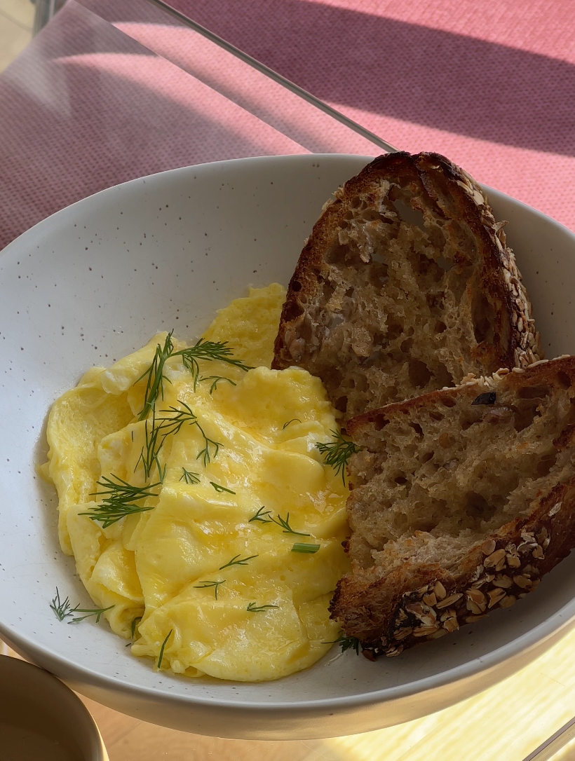 Kept it simple with soft folded eggs, toast griddled on a buttery skillet (+ a little pecorino mountain, not pictured here, unfortunately) and thick-cut bacon before getting out on the road!