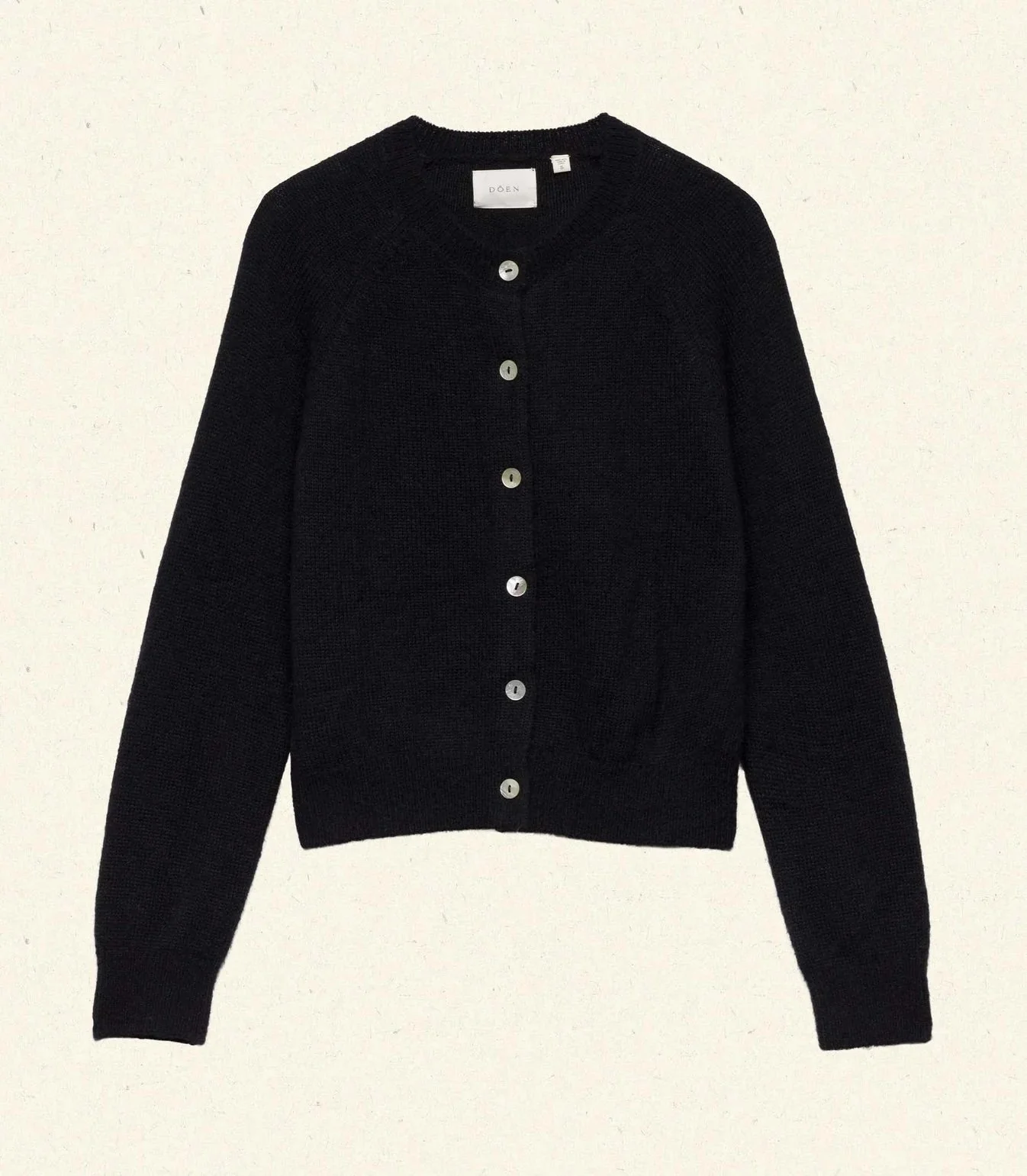 In a soft baby alpaca blend, Doen’s forever-favorite Petra Cardigan features a crew neck, fitted raglan sleeves, and ribbing at the neckline, cuffs, and hem. Mother-of-pearl buttons extend down the front.